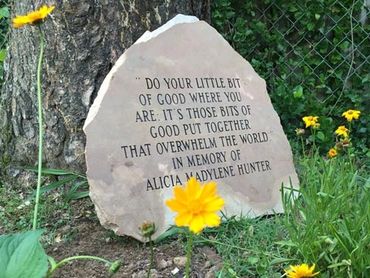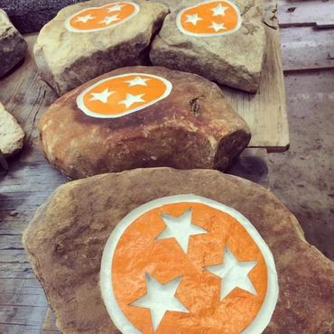 Personalize your flower garden with a customized river rock or stepping stone. These can be used to memorialize a loved one or display other interests. Various shapes and sizes are available.