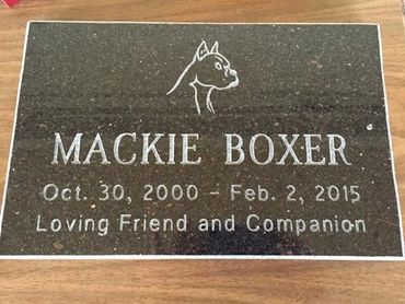 We understand that pets are a significant part of any family, and this is why we offer the same quality material and design options for pet memorials. We can engrave names, dates, and even artwork onto a variety of materials such as various sizes of granite markers, garden rocks, or boulders. You can also bring your own material to have engraved.